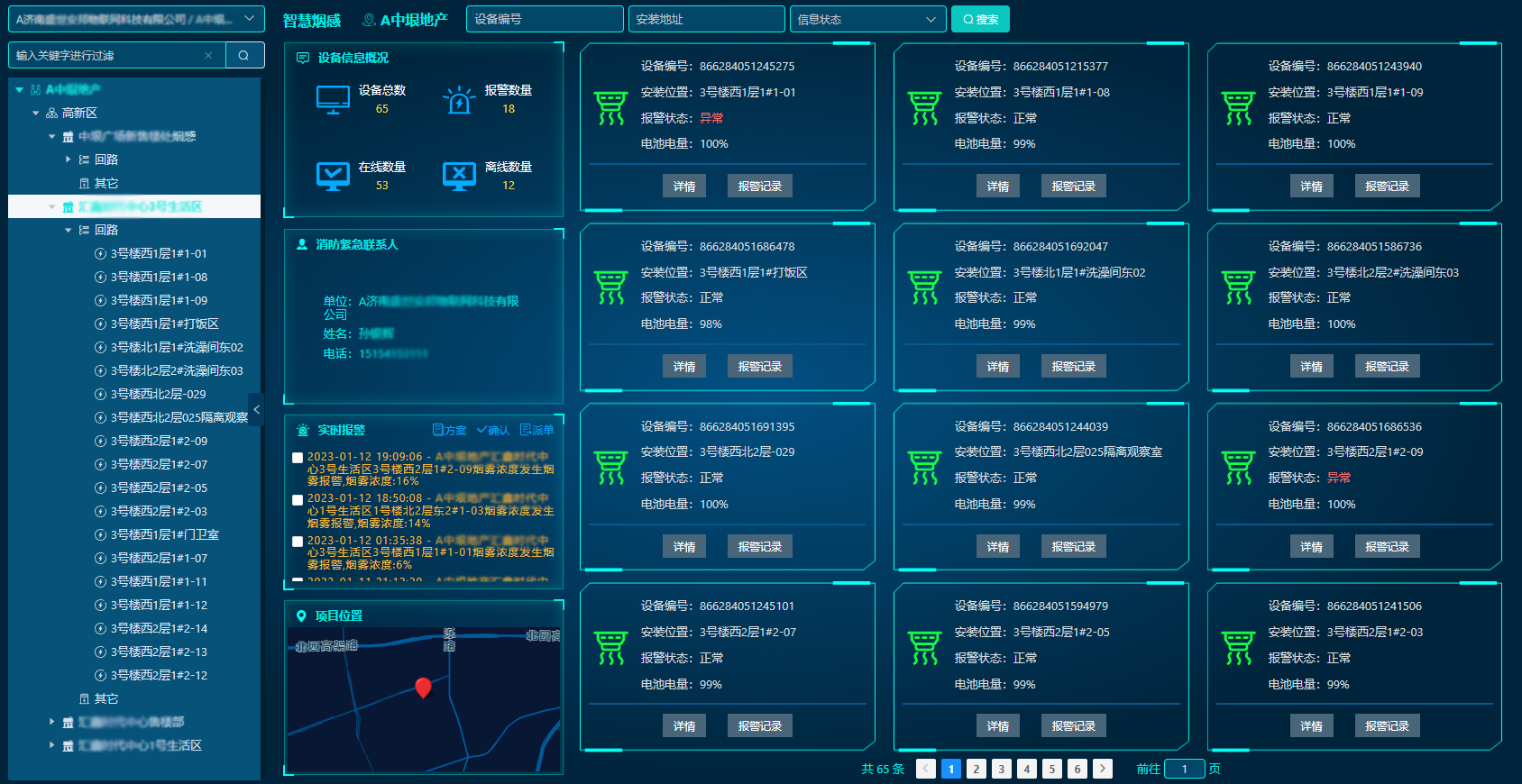 實(shí)時(shí)采集聯(lián)網(wǎng)建筑物內(nèi)前端感知設(shè)備(如:感煙、感溫、可燃?xì)怏w等)的報(bào)警信息和運(yùn)行狀態(tài)信息,隨時(shí)隨地查看傳感器信息,及時(shí)發(fā)現(xiàn)前端消防設(shè)施存在的各種故障及安全隱患。